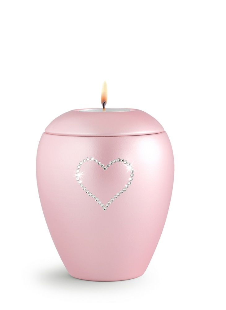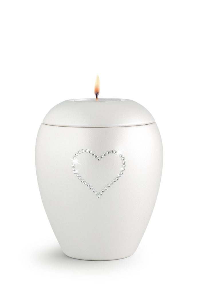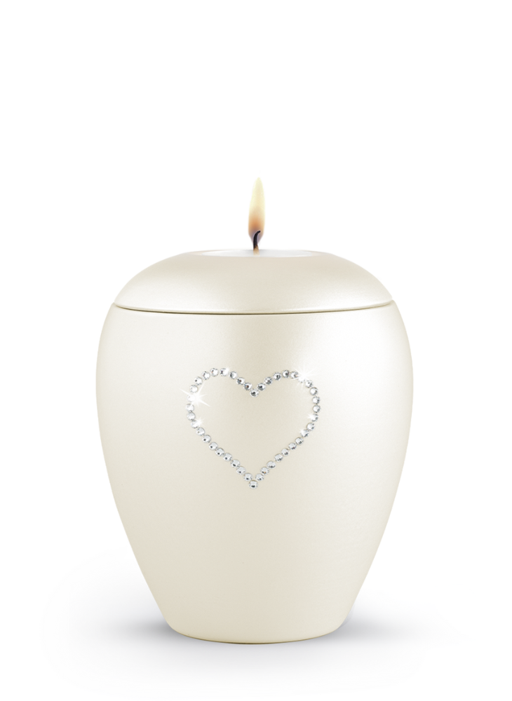 Keramická urna Crystal má matný, perleťový povrch v červené barvě, zdobený Swarovski kamínky ve tvaru srdce. Více